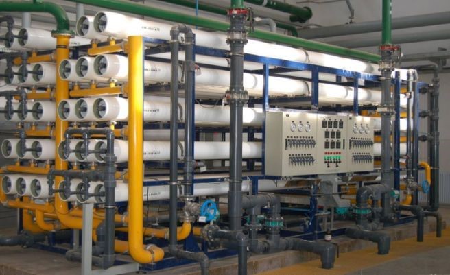 反滲透原理:用一張半透膜將稀溶液(如純水)與濃溶液(如鹽水)隔開,稀溶液會(huì)向濃溶液滲透并保持相應(yīng)的滲透壓,此現(xiàn)象稱為滲透。如果在濃溶液處施加大于滲透壓的壓力,則濃溶液會(huì)向稀溶液一側(cè)滲透,此現(xiàn)象稱為反滲透。一般反滲透膜操作壓力為1.0-10.0MPa,切割分子量小于500,能截留鹽或小分子量有機(jī)物,可使水中離子的含量降低96%-99%。