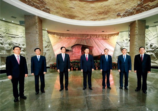 2017年10月31日,中共中央總書記、國(guó)家主席、中央軍委主席習(xí)近平帶領(lǐng)中共中央政治局常委李克強(qiáng)、栗戰(zhàn)書、汪洋、王滬寧、趙樂際、韓正,瞻仰上海中共一大會(huì)址和浙江嘉興南湖紅船。這是31日下午,習(xí)近平在南湖革命紀(jì)念館參觀結(jié)束時(shí)發(fā)表重要講話。 新華社記者 蘭紅光/攝